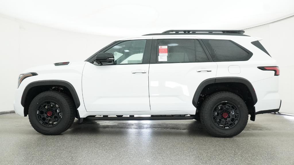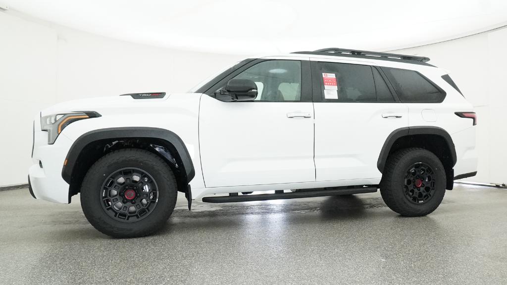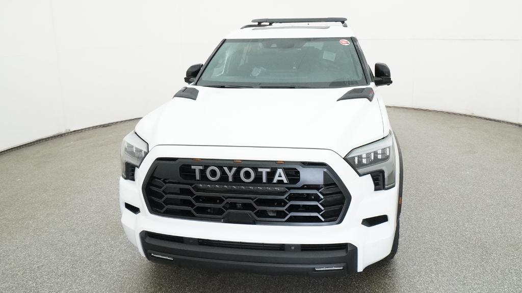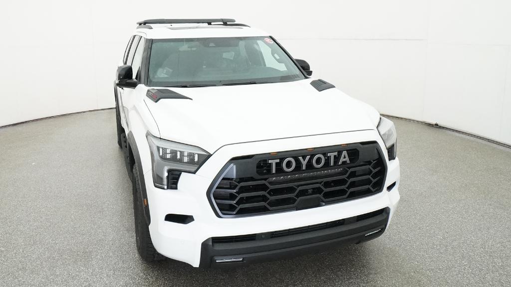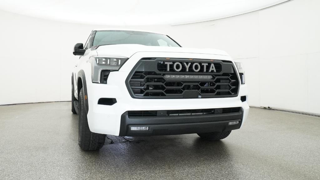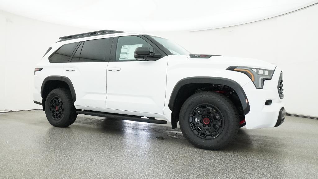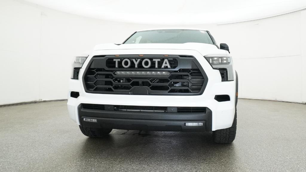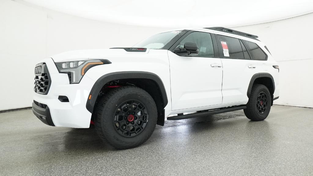 Color-keyed door handles; satin-black outside mirror caps and roof railsPremium LED headlights with black trim, LED Daytime Running Lights (DRL), sequential turn signals, and automatic leveling adjustment18-in. TRD Pro matte-black forged-aluminum BBS® wheels with TRD center caps -