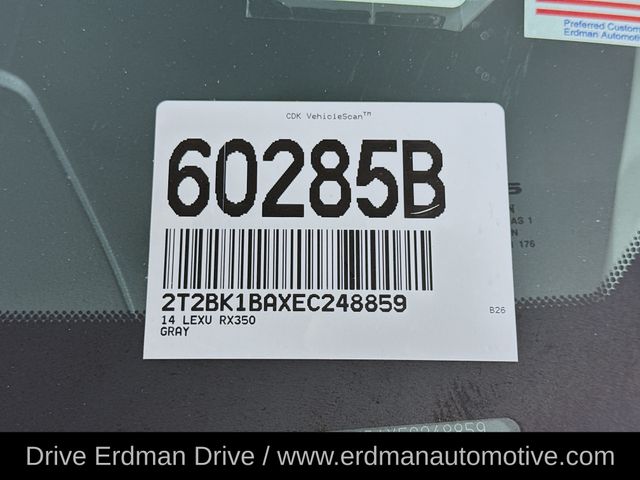 New Price! Gray 2014 Lexus RX 350 AWD 6-Speed Automatic with Sequential Shift ECT-i 3.5L V6 DOHC Dual VVT-i 24V AWD, 9 Speakers, AM/FM radio: SiriusXM, Auto-dimming door mirrors, Bumpers: body-color, Driver vanity mirror, Front reading lights, Garage door transmitter: HomeLink, Heated door mirrors, Power door mirrors, Radio: Prem AM/FM Audio w/Single CD Player, Spoiler, Turn signal indicator mirrors.